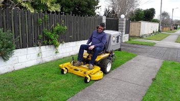 Our Walker Ride On Mower side chutes, mulches and catches those grass clippings. This services those larger sections, life style blocks and commercial properties.